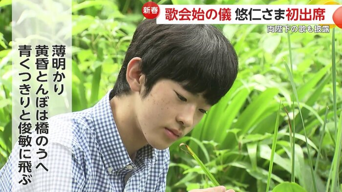 初めて和歌を寄せ、儀式に出席した悠仁さまは、大好きなトンボを間近に見た喜びをしたためられた。