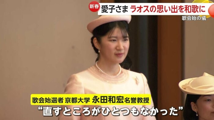 歌会始の選者で皇室の和歌の相談役は、FNNの取材に対し「直すところがひとつもなかった」と話している。