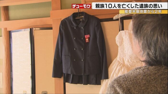 家族との写真や息子が身に着けていた時計。家族で暮らした家に残っていたものだ。中には娘が来ていた学校の制服も。「これに袖を通すことはないんだなって思ったときに感情がバーッと出てくる。涙が出てくるというか」