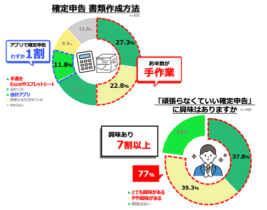 3.2人に1人が確定申告を「Excelやスプレッドシート」「手書き」で対応