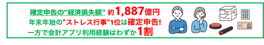 確定申告の“経済損失額”は約1,887億円*!年末年始の”ストレス行事”1位は確定申告! 「年末の大掃除より面倒」という声も多数 スマホ申告対応の時代でも手作業が主流!?会計アプリ利用経験はわずか1割