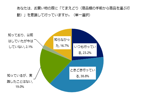 てまえどりを「いつも行っている」が2割強、「ときどき行っている」が4割弱であり、合わせて62.0%と過半数を占めています。