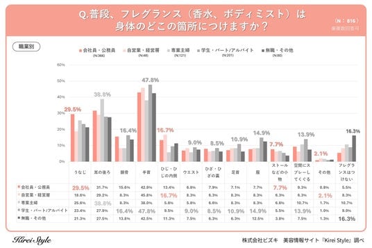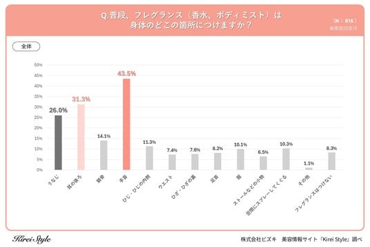 【質問:普段、フレグランス(香水、ボディミスト)は身体のどこの箇所につけますか?】