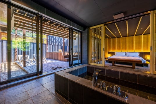 源泉掛け流しの露天風呂に加え内風呂も備え、ゆとりある滞在を叶える特別な一室です。