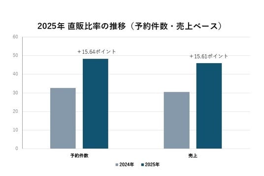 |公式サイト中心の直販強化により予約件数・売上の直販比率が上昇