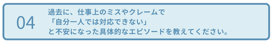 では、具体的なエピソードとして、過去に、仕事上のミスやクレームで「自分一人では対応できない」と不安になったことはどのようなものがあるのでしょうか?