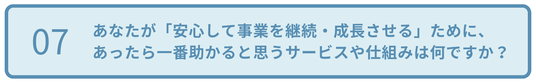 最後に、「安心して事業を継続・成長させる」ためにあったら一番助かると思うサービスや仕組みは何なのか伺ったところ、以下のような回答が集まりました。