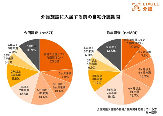 単身世帯増加や地域の介護サービス運営難の影響か。「自宅介護期間なし」は昨年調査の2倍に