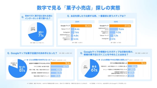 消費者アンケートの結果、世代を問わず、Googleマップを比較する菓子小売店を探す消費者がいることが明らかに。