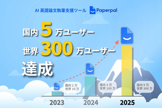 研究者総合支援サービスを展開するエディテージ(カクタス・コミュニケーションズ株式会社)は、同社が提供するAI英語論文執筆支援ツール「Paperpal(ペーパーパル)」の日本国内ユーザー数が、2025年12月に5万人を突破したことを発表しました。