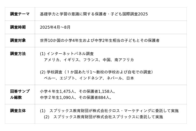 スプリックス教育財団 基礎学力と学習の意識に関する保護者・子ども国際調査2025