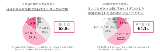 ・ポジティブな感情までも「浮かれ過ぎないよう落ち着かせる」人が64.1%