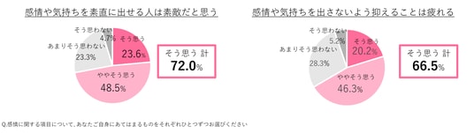 感情の表出を抑える一方で、「感情を素直に出せる人への憧れ」や「感情を抑えることに疲れ」も感じている生活者は多数