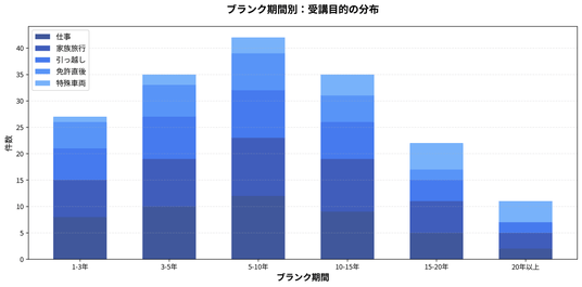 この分布は、東京ドライビングサポートの主要な受講者層が、いわゆる「完全な初心者」ではなく、