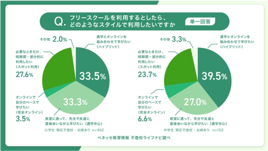 中学生は「通学とオンラインのハイブリッド」が約4割、「通学中心」は3割弱