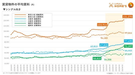 LIFULL HOME'Sマーケットレポート2025年総括版 賃貸シングル向き(東京23区・大阪市・福岡市)