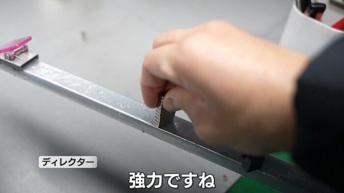 見せてくれたのはレアアースを混ぜた金属で、電流を流すことで磁石になるといいます。