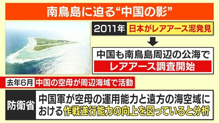 しかし一方、2011年に日本がレアアース泥を発見した直後に中国も南鳥島周辺の航海でレアアース調査を開始。さらに2025年の6月、中国の空母が周辺海域で活動するという行動に。