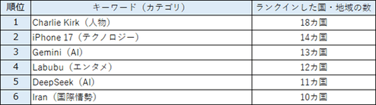 【複数国でランクインした主な検索キーワード】