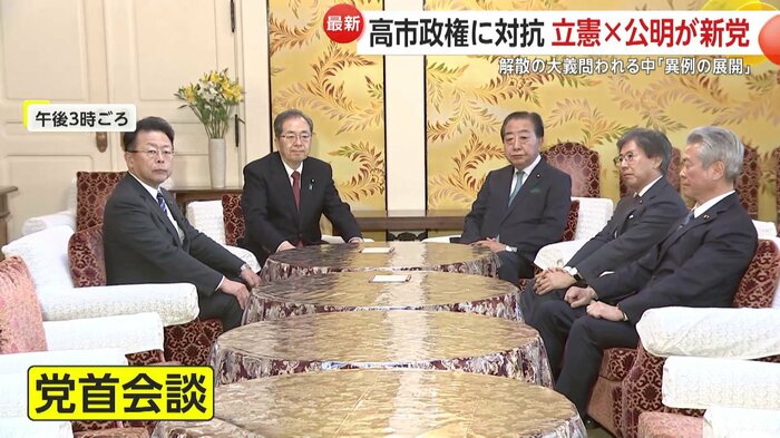 高市政権に対抗するため、中道勢力を結集する新党結成で合意。