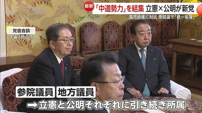 ただ、参院議員と地方議員については、立憲・公明それぞれの党に引き続き所属する、としている。