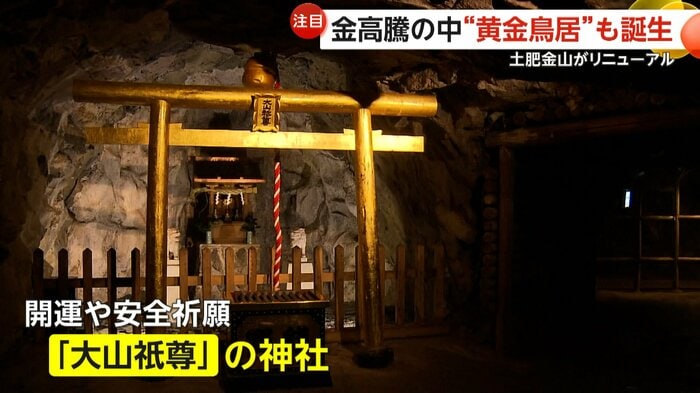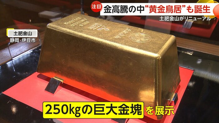 静岡・伊豆市の「土肥金山」が、2025年末に金のテーマパークとしてリニューアルオープンした。坑道内には金箔を施した高さ約2.4mの「黄金鳥居」が50本並び、話題を呼んでいる。一方、以前展示していた実際に触れる重さ250kgの巨大な金塊は、金価格の高騰により保険料などがかさみ、展示を終了したという。