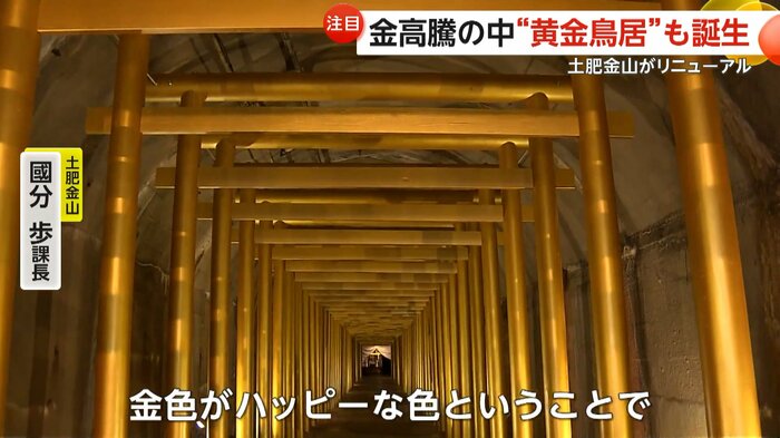 昨年、親会社が変わり、夏ぐらいから検討してこのような鳥居をつくった。金色がハッピーな色ということで、たくさんの人の開運につながればいいなと思う。
