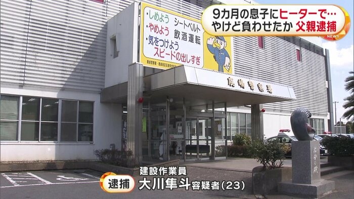 建設作業員の大川隼斗容疑者(23)は2025年3月ごろ、鹿嶋市の自宅で、生後9カ月の息子の顔を温風ファンヒーターに押しつけるなどの暴行を加えた傷害の疑いがもたれている。