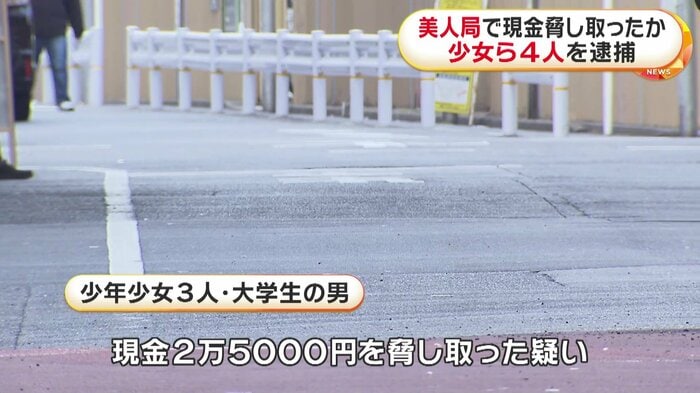 少年少女3人(女子高校生(15)、少女(16)、少年(17))と大学生の男(19)は2025年8月、新宿区歌舞伎町のホテルで男性(70代)に「未成年を連れ込みやがって」などと因縁をつけて暴行を加え、現金を脅し取った疑いが持たれている。