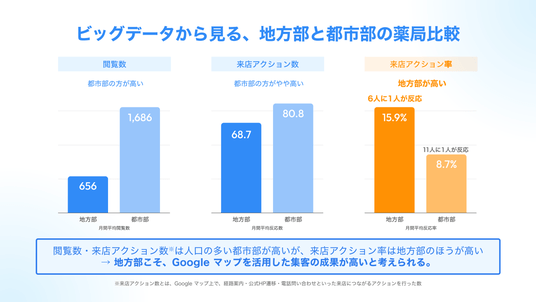 さらに、地方部は都市部に比べてGoogleマップ閲覧後の来店アクション率が高いことも明らかに。