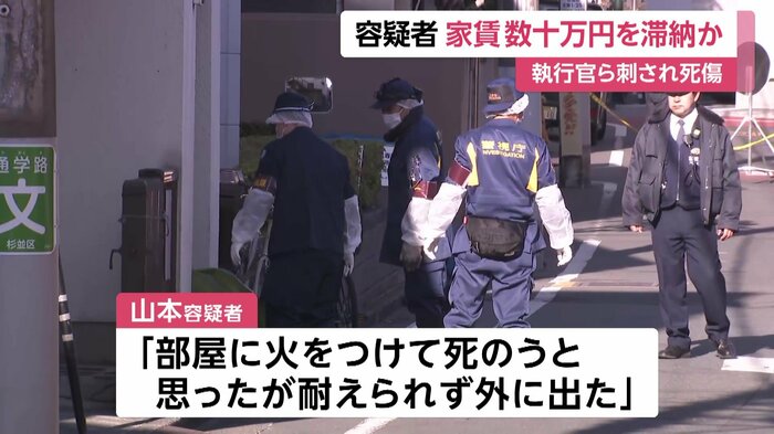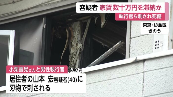 東京・杉並区のアパートで、強制執行のために訪れた裁判所の執行官ら2人が刃物で刺され死傷した事件で、逮捕された男が家賃数十万円を滞納していたとみられることがわかった。