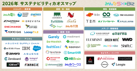 社会課題をオモシロく解決する株式会社UPDATER(本社:東京都世田谷区、代表取締役:大石英司)が運営する法人向けプラットフォーム「みんなSX for Biz」は、エネルギー・脱炭素、農業・食・地域、環境・資源循環、テクノロジー・デジタル、人・組織・社会、メディア・情報発信、モビリティ・インフラの7カテゴリーにわたり、サステナビリティに関わる主要企業・サービスを整理・可視化した2026年版「サステナビリティカオスマップ」を公開しました。