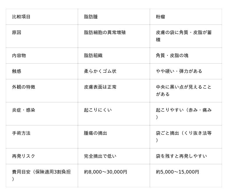 脂肪腫と粉瘤の違い