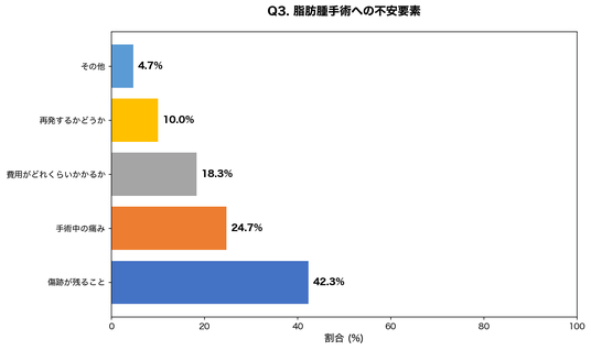 設問:脂肪腫の手術を受ける際、最も不安だったことは何ですか?