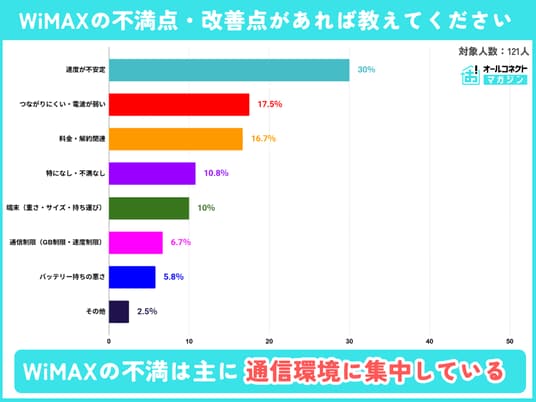 WiMAX利用者の不満は通信環境と端末性能に集中