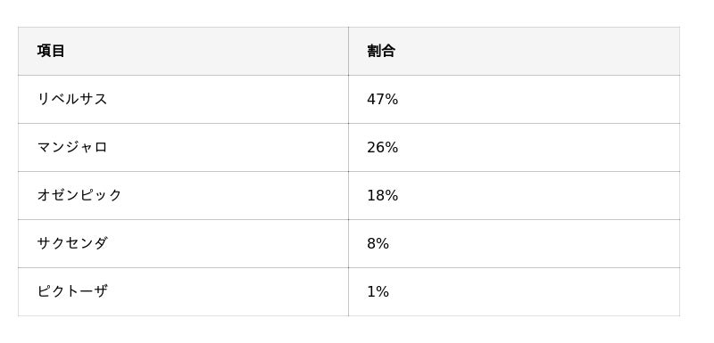 マンジャロ(26%)やオゼンピック(18%)といった注射タイプと比較すると、内服薬であるリベルサスがより多く選択されている傾向が見られます。