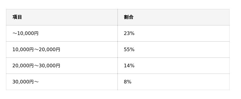 また、全体の78%が20,000円未満と回答しており、比較的利用しやすい価格帯であることがうかがえます。