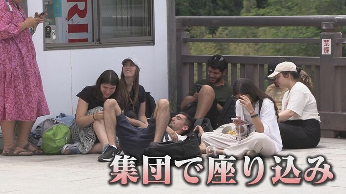 境内のポイ捨てや、集団で地面に座り込むなど、一部の外国人観光客によるマナー違反。