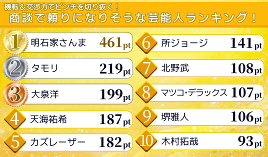 第1位 明石家さんま 461ポイント