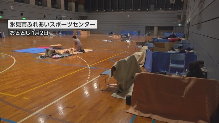2年前の能登半島地震では、氷見市の避難所で避難者が毛布や寝袋の雑魚寝で夜を明かした。市は今年度中に735床の段ボールベッドを備蓄することにしている。