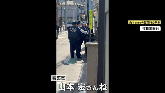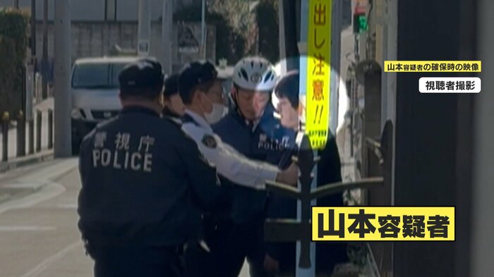確保の瞬間を捉えた映像には、複数の警察官に囲まれ、名前を確認される山本容疑者の姿が映っていました。