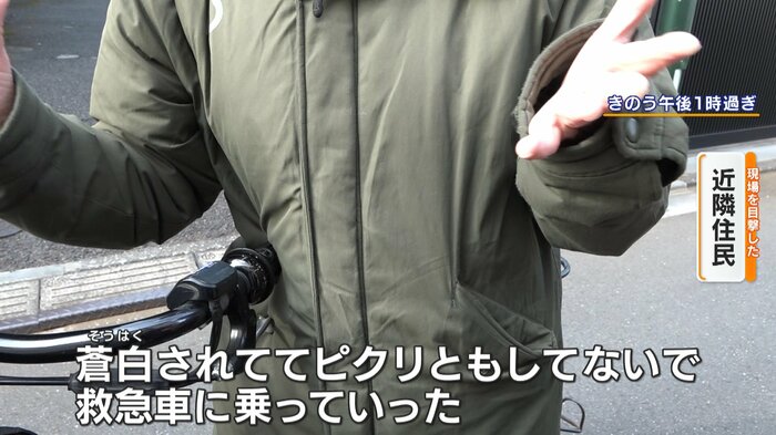 私がちょうど(被害者が)運ばれてるのを見たときは、心配蘇生されたまま、顔も真っ白というか…蒼白されていてピクリともしてないで救急車に乗っていった。