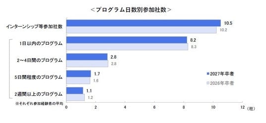 ○参加経験がある学生は93.3%、参加社数は平均10.5社