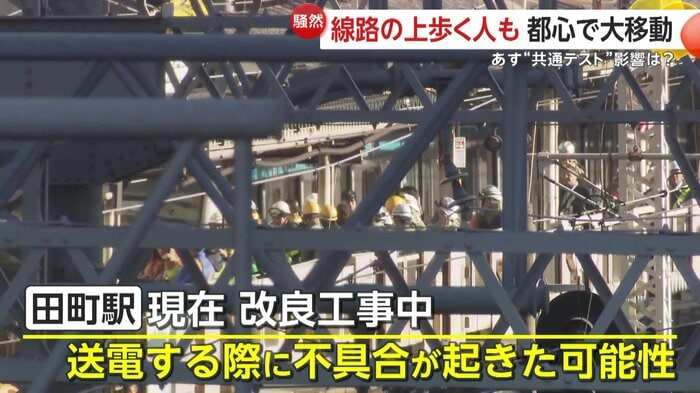 現在、田町駅は改良工事中で始発の運転に向けて送電する際に、何らかの不具合が起きた可能性がある。