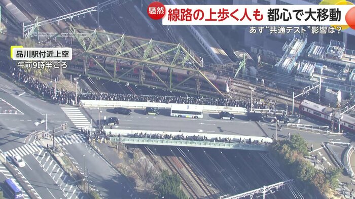 その影響は広い範囲におよび、JR品川駅に近い道路では、品川駅から徒歩で移動しようとする人が歩道を埋める異様な光景が見られた。