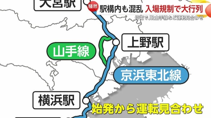 JR山手線などが運転を見合わせ、首都圏の通勤ラッシュ直撃した。