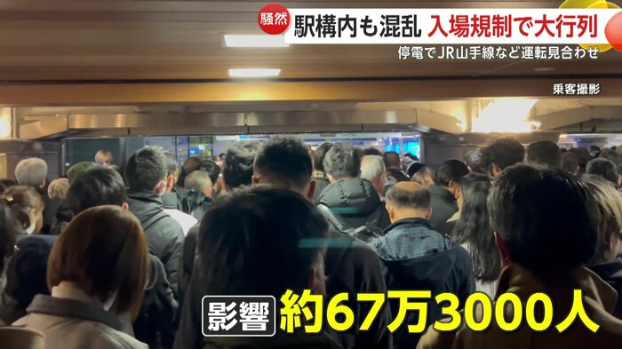 影響は約67万3000人に及び、首都圏は大混乱となった。