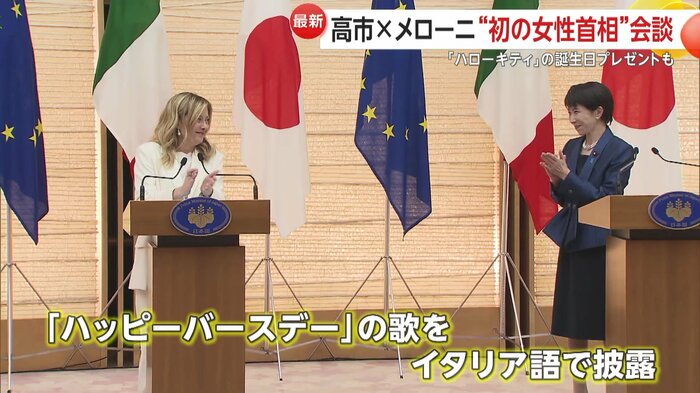 また、昼食会で高市首相は「ハッピーバースデー」の歌をイタリア語で歌い、メローニ首相を祝ったという。