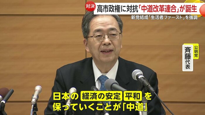 公明党の斉藤代表は「日本の経済の安定と平和を保っていくことが『中道』」と述べた。