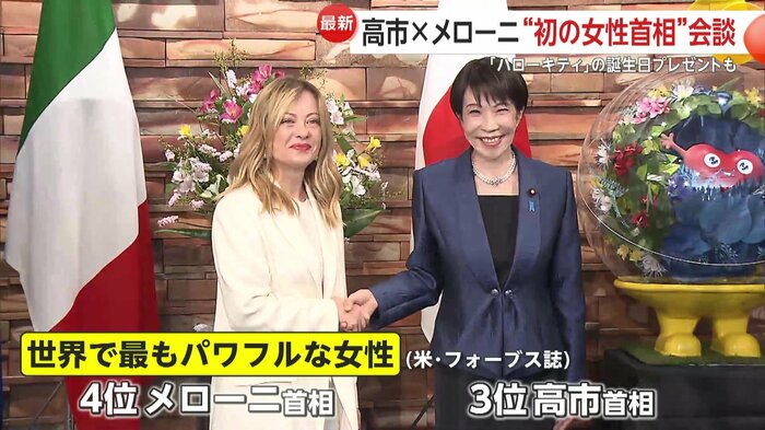 アメリカの経済誌「フォーブス」が選んだ「世界で最もパワフルな女性」の3位(高市首相)、4位(メローニ首相)の2人が16日、首脳会談に臨んだ。